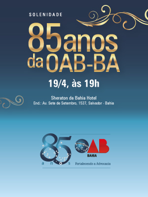 A OAB da Bahia comemora, nesta quarta-feira (19), a partir das 19h, em solenidade no Sheraton Hotel da Bahia, seus 85 anos de fundação, completos no último dia 11 de abril. Além do presidente da OAB-BA, Luiz Viana Queiroz, e de toda a diretoria da Seccional, a cerimônia contará com a presença do presidente nacional da OAB, Claudio Lamachia, personalidades do mundo jurídico e da sociedade baiana, lideranças da advocacia e diversas autoridades. Já confirmaram presença os presidentes das OAB-SP, Marcos da Costa, da OAB-RJ, Felipe Santa Cruz, da OAB-PE, Ronnie Preuss Duarte, e da OAB-ES, Homero Mafra.