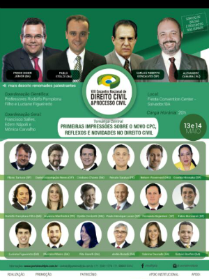 Atenta a todas estas mudanças e o convidativo cenário de debates e atualização legislativa, a MÚLTIPLA lhe convida a integrar o VIII Encontro Nacional de Direito Civil e Processo Civil, a se realizar na Capital Baiana, entre os dias 13 e 14 de Maio de 2016.