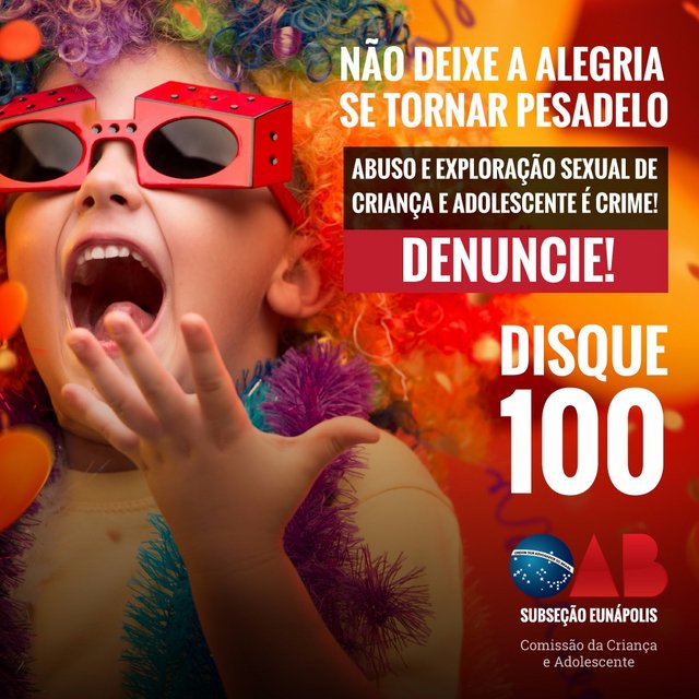 A OAB – Subseção Eunápolis, através da Comissão de Defesa da Criança e Adolescente, no período dos festejos carnavalescos, promove campanha “Não deixa a Alegria se tornar pesadelo”.
