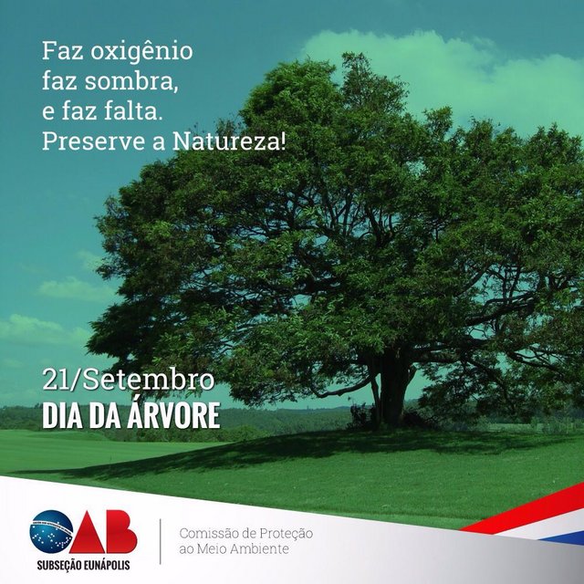 A OAB - Subseção Eunápolis, através da Comissão de Defesa do Meio Ambiente, faz alusão comemorativa ao Dia da Árvore (21/09).