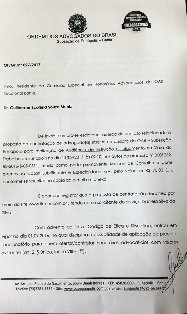 A OAB - Subseção Eunápolis posiciona-se com firmeza no combate ao aviltamento de honorários