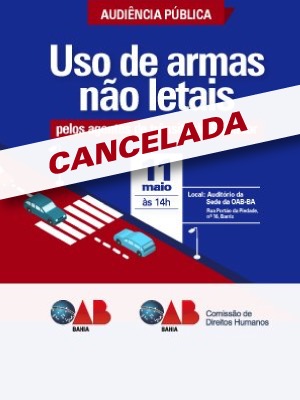 A Comissão de Direitos Humanos da OAB-BA realiza na sexta-feira (11), às 14h, uma audiência pública com o objetivo de debater o porte de armas não letais por agentes de trânsito da capital baiana, objeto do Projeto de Lei nº 368/15 que tramita na Câmara de Vereadores de Salvador.