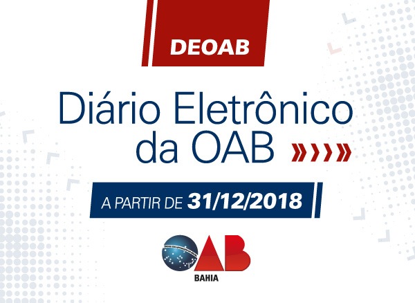 A Lei n. 13.688, de 3 de julho de 2018, publicada no DOU Seção 1 de 04/07/2018, p. 1, instituiu o Diário Eletrônico da Ordem dos Advogados do Brasil – DEOAB. A referida lei entra em vigor no dia 31/12/2018 e será de uso obrigatório no tocante à legalidade das publicações da OAB em todo o território brasileiro. O DEOAB foi regulamentado pelo Conselho Federal da Ordem dos Advogados do Brasil por intermédio do Provimento n. 182/2018-CFOAB, publicado no DOU Seção 1 de 31/10/2018, p. 126, com as alterações do Provimento n. 184/2018-CFOAB, publicado no DOU Seção 1 de 16/11/2018, p. 184. O art. 6º-B do referido provimento determina que a criação do DEOAB e a sua entrada em vigor sejam objeto de ampla divulgação, o que se faz por intermédio do presente comunicado. Portanto, a partir de 31/12/2018, os atos, as notificações e as decisões dos órgãos da Ordem dos Advogados do Brasil, salvo quando reservados ou de administração interna, serão publicados no DEOAB, a ser disponibilizado na internet e acessado no seguinte endereço eletrônico: https://deoab.oab.org.br.
