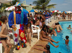 Com brincadeiras e distribuição de brinquedos, as crianças se alegraram dando a volta em redor da piscina com o Palhaço Zay Brasil neste domingo, 17, no Clube dos Advogados. Esse é o segundo ano em que o palhaço vem animar os pequenos na festa comemorativa ao Dia das Crianças, promovida pela OAB-BA. Durante todo o dia, além das brincadeiras, foram oferecidos cachorro quente, pipoca e picolé.