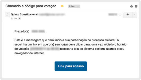 Caso não o receba, o advogado deverá acessar aqui e preencher seus dados cadastrais (nº OAB, CPF e CNA). Feito isso, ele receberá por e-mail/ SMS o link de votação.