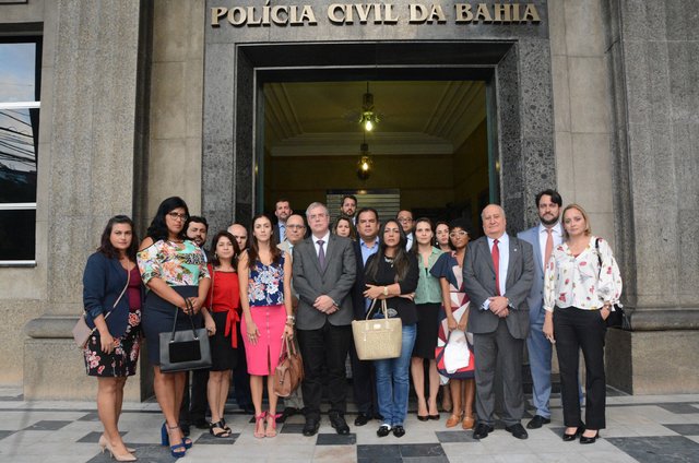 Estiveram presentes o presidente seccional, Luiz Viana Queiroz, a vice-presidente, Ana Patrícia Dantas Leão, o secretário-geral, Carlos Medauar, o presidente da CAAB, Luiz Coutinho, e o conselheiro seccional Fabiano Pimentel, presidente da Associação Brasileira dos Advogados Criminalistas na Bahia (ABRACRIM-BA), além de conselheiros seccionais que representam a OAB-BA na capital e no interior do estado. O grupo foi recebido pelo delegado Flávio Góis, diretor do Departamento de Polícia do Interior (Depin).
