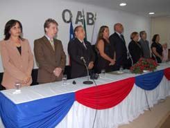 Em seguida passou a palavra a madrinha da turma, a advogada e presidente da Comissão de Proteção aos Direitos da Mulher, Marilena Galvão. Em seu discurso, ela deu as boas vindas aos novos estagiários. "Vocês estão formalmente entrando para a Ordem dos Advogados do Brasil e dando um importante passo para a vida profissional de vocês. A partir de agora, vocês terão direitos e deveres", declarou. Marilena Galvão ainda lembrou que uma das principais lutas da OAB é a defesa das prerrogativas dos advogados, sempre pautada pela ética. "Vocês são a futura geração desta casa e devem continuar lutando pela defesa da nossa classe e dos direitos dos cidadãos", pontuou. Ao final, convidou a todas as estagiárias e futuras advogadas a participar de sua comissão, que promove o debate sobre os direitos das mulheres.
