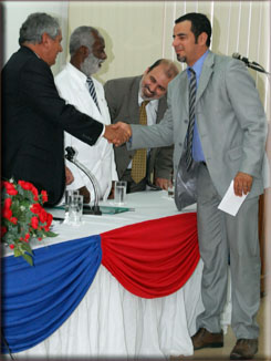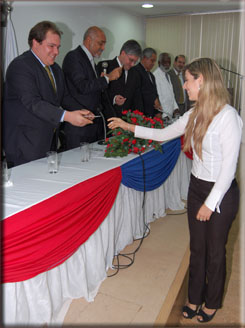 Em seguida passou a palavra ao Presidente da Comissão de Seleção da OAB-BA e Conselheiro João Alves Amaral, paraninfo da turma, que defendeu a profissão do advogado e lembrou a importância do estágio para a carreira profissional. "É através do estágio que vão adquirir a experiência essencial para a vida jurídica de vocês", ponderou. Dando continuidade, o Vice-Presidente Antonio Menezes fez uma rápida explanação sobre o mercado de trabalho e reiterou a importância dos estudos e dos livros durante toda a carreira do profissional do Direito. "Para aqueles que abraçarem a advocacia com dedicação e ética, sempre haverá espaço no mercado de trabalho. Hoje nós temos mais de mil Sociedades de Advogados na Bahia, demonstrando que já espaço para todo mundo que quer trabalhar sério", pontuou.