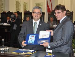 Em seguida, passou a palavra ao Vice-Presidente do Conselho Federal da OAB, Alberto de Paula Machado, que iniciou seu discurso rendendo homenagens aos grandes juristas baianos, entre eles Aliomar Baleeiro. Lembrou que sua turma de graduação do curso de Direito em São Paulo levou o nome do jurista baiano, porque, durante o regime militar, o jurista fora proibido de ministrar palestra sobre Constituinte na instituição de ensino. "Falar da Advocacia baiana é falar da Advocacia brasileira. A presença do Conselho Federal (da OAB) aqui é um ato expresso de reconhecimento à Advocacia baiana. Está em festa toda a advocacia brasileira pelo aniversário da OAB-BA", declarou.