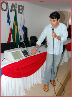 Na manhã de hoje (30), funcionários das subseções e presidentes das subcomissões Eleitorais da OAB-BA participaram de um treinamento, ministrado pelo representante do Tribunal Regional Eleitoral (TRE), Livio Assis que passou instruções e orientações referentes ao manuseio da urna eletrônica e os cuidados que devem ser observados durante a votação. No treinamento funcionários da Seccional que atuam com o setor de informática e a Comissão Eleitoral da OAB-BA, esclareceram dúvidas sobre o processo.