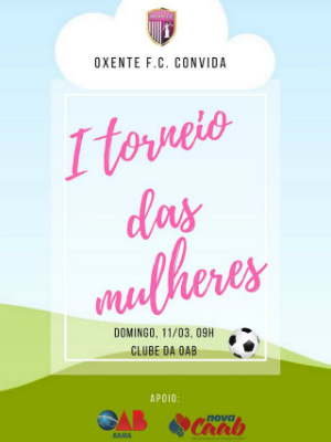A OAB-BA, através de parceria entre a Escola Superior de Advocacia (ESA) e a Caixa de Assistência dos Advogados da Bahia (CAAB), promoverá, no próximo domingo (11), o primeiro torneio de Futebol de Sete em homenagem ao mês das mulheres. O evento é uma iniciativa do Oxente FC, equipe da OAB-BA formada exclusivamente por advogadas, e acontecerá no Clube da OAB-BA, na Praia do Flamengo, a partir das 9h.