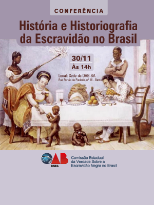 A OAB da Bahia, por intermédio de sua Comissão Estadual da Verdade Sobre a Escravidão Negra no Brasil, promove na próxima segunda-feira (30/11) a conferência intitulada "História e historiografia da escravidão no Brasil", com o historiador, professor universitário e escritor João José Reis, referência no estudo da história e da escravidão no século XIX. O evento acontece na sede da OAB-BA, na Rua Portão da Piedade, às 14h, com entrada franca.