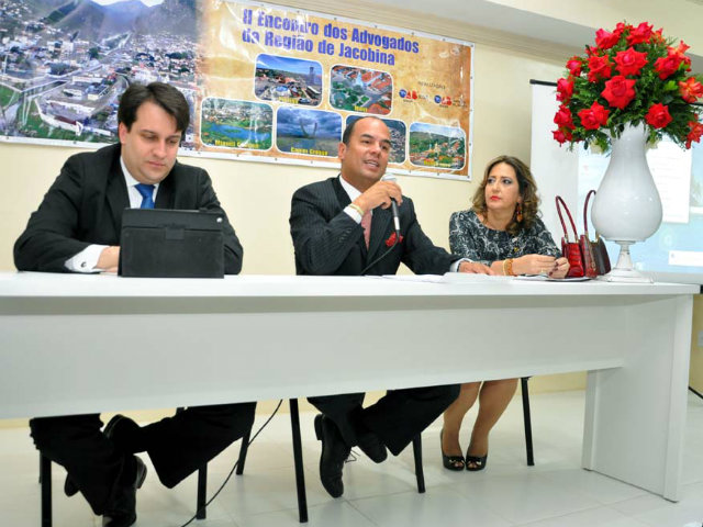 Foi realizado nesta quinta e sexta-feira (25 e 26) o II Encontro de Advogados da Região de Jacobina, no Instituto Profissionalizante da cidade. Promovido pela Subseção local, em parceria com a Escola Superior de Advocacia Orlando Gomes (ESA/BA), o evento foi aberto na quinta-feira (25) pelo diretor-geral da ESA, Luiz Augusto Coutinho, que falou sobre o amor pela advocacia e "a felicidade de estar realizando mais um evento para os advogados do interior do estado". Em seguida, o diretor secretário da ESA, Fabiano Pimentel, fez sua palestra sobre "Tutela Antecipada em Revisão Criminal". Ao lado da presidente da Seccional, Marilda Santana, Luiz Coutinho também inaugurou a Sala de Curso Telepresencial da Subseção, que ganhou uma antena receptora da ESA.
