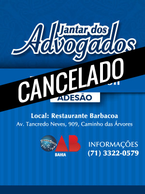 O Jantar dos Advogados, que aconteceria nesta sexta-feira (15) no Barbacoa, foi cancelado em respeito ao luto oficial de três dias decretado no país e no estado pela morte prematura e trágica de Eduardo Campos.