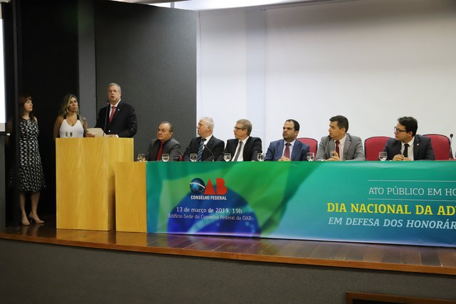 O vice-presidente nacional da OAB, Luiz Viana, representando o presidente nacional, Felipe Santa Cruz, foi o responsável por ler a nota de desagravo. “Não se pode admitir a acusação de que os colegas que atuaram no incidente cometeram crime por defenderem a constitucionalidade dos honorários, nem, tampouco, a alegação de que os honorários de sucumbência são de titularidade da parte, independentemente da natureza do vínculo com o cliente, se público ou privado. Os honorários de sucumbência são constitucionais e constituem direito de titularidade dos advogados, sejam públicos ou privados, na linha de diversos pronunciamentos do Supremo Tribunal Federal e de tribunais pátrios”, afirma um trecho do documento.