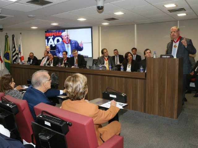 A homenagem aconteceu durante sessão do Conselho Seccional da OAB-SP. Também receberam a honraria o secretário-geral do Conselho Federal da OAB, Felipe Sarmento Cordeiro, e os presidentes das Seccionais do Espírito Santo, Homero Junger Mafra, e de Pernambuco, Ronnie Preuss Duarte.O presidente da OAB-SP, Marcos da Costa, destacou a importância dos esforços conjuntos das seccionais, sob a liderança do presidente nacional da OAB Claudio Lamachia e sua diretoria, para a concretização de importantes iniciativas, como três recentes alterações feitas no Estatuto do Advogado que garantiram mais uma prerrogativa profissional – a presença do advogado nas investigações –, a criação da sociedade unipessoal de advocacia e a suspensão de prazos para advogadas que tiverem filhos.