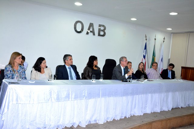 Ainda na solenidade, a representante da Comissão de Prerrogativas da OAB-BA Lívia Nascimento Vital descreveu como “árduo” o início da nova caminhada na advocacia, uma vez que “a defesa dos cidadãos tem se tornado cada vez mais difícil, diante da radicalização e aprofundamento das mudanças, numa sociedade onde diariamente são violados os direitos da classe”. “Cabe a nós, advogados, portanto, a tarefa de defender os mais fracos dos mais fortes. Essa é uma das grandes lições da advocacia”, disse. Além de Viana e Lívia, participaram da cerimônia o conselheiro federal Fabrício de Castro Oliveira, o presidente da Comissão de Direitos e Prerrogativas da seccional, Adriano Batista, a presidente de Informática Jurídica da OAB-BA, Tamiride Monteiro Leite, e os advogados Ísis Fedulo e Sérgio Tourinho. Foto: Angelino de Jesus (OAB-BA)