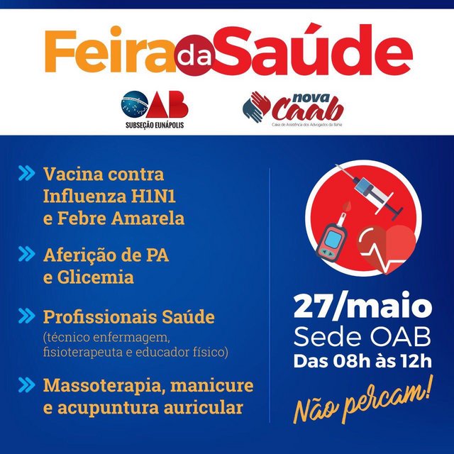 Mais Benefícios – Projeto “Feira da Saúde” Promovido pela OAB – Subseção Eunápolis