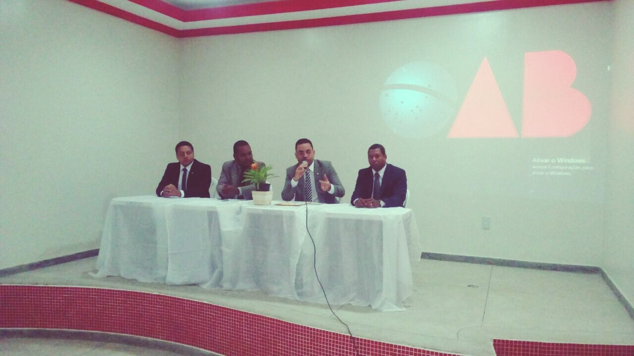 Compuseram à Mesa Alta, o Presidente da OAB - Subseção Eunápolis (Alex Ornelas), o delegado da CAAB (Cleriston Souza); o subdelegado da CAAB (Allan Brandão) também representando o Conselho Consultivo dos Jovens Advogados da OAB e o advogado Paulo Galdino.