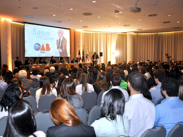 A noite desta quinta-feira (17) foi de felizes lembranças de um grande jurista baiano e um dos maiores processualistas brasileiros. Promovida pela OAB da Bahia, a cerimônia "5 anos sem Calmon", em homenagem a J. J. Calmon de Passos, lotou o Salão Esmeralda do Sheraton Hotel da Bahia onde profissionais e estudantes da comunidade jurídica de Salvador conheceram mais sobre a vida e a obra de Calmon, nas palestras proferidas pela professora Marília Muricy e pelo professor e conselheiro federal Fredie Didier. Na ocasião, aconteceu o lançamento do livro póstumo "Revisitando o Direito, o Poder, a Justiça e o Processo - Reflexões de um jurista que trafega na contramão", apresentado pelo advogado Sylvio Garcez Júnior.Compuseram a mesa-alta da cerimônia o presidente da OAB da Bahia, Luiz Viana Queiroz; o vice-presidente Fabrício Oliveira; a professora Marília Muricy, o professor Fredie Didier; Eridan Maria Velloso de Passos, filha de J.J. Calmon; o desembargador Nilson Castelo Branco; o advogado Sylvio Garcez; o ex-presidente da OAB-BA Geraldo Sobral, que representou o Instituto de Letras Jurídicas; o desembargador Pedro Guerra; o ex-vice presidente e ex-secretário geral da OAB-BA Antonio Menezes e o advogado e coordenador do evento Sérgio Novaes. "A ideia desta noite 'cinco anos sem Calmon' é fazer uma homenagem a esse grande mestre", declarou o presidente da OAB Bahia Luiz Viana Queiroz em seu discurso.
