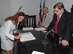 Os advogados Marcelo Vilas Boas Gomes, Claudete Maria Kramel e Carolina Cerqueira Seixas assinaram o termo de posse nesta quinta-feira, 07, como membros do Tribunal de Ética e Disciplina da OAB-BA. Aquinoel Neves Borges Filho e Rafle Muniz Salume também foram nomeados membros do TED, mas não puderam comparem à Ordem para a posse, que será remarcada para outra data. Os cinco advogados passam a fazer parte do Tribunal de Ética e Disciplina decorrente de vagas existentes na 1ª Turma.