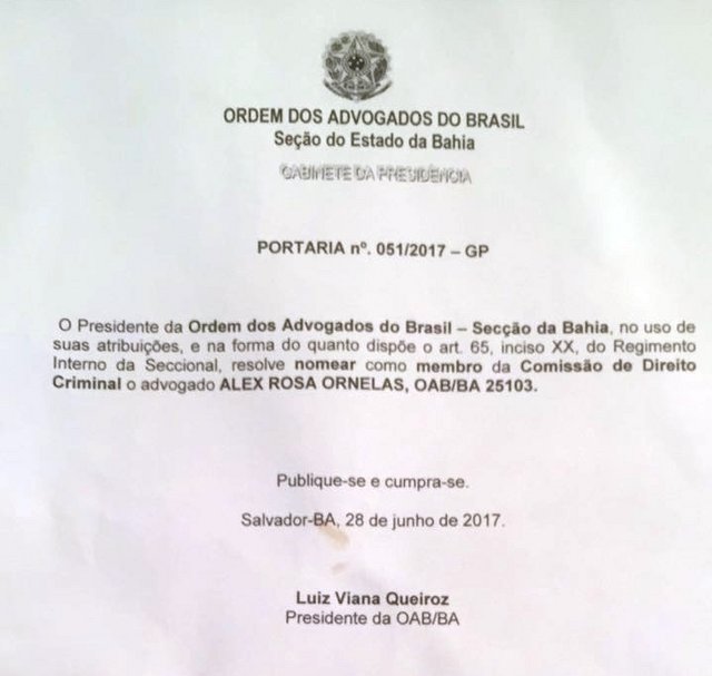 No dia 29/06 (quinta-feira), foi publicada no Diário Oficial - DJ Bahia a designação do advogado Alex Ornelas para compor a Comissão de Direito Criminal da Seccional baiana.