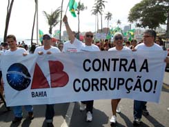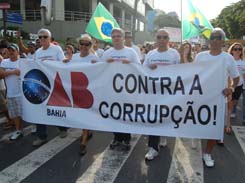 Diretores da Seccional baiana da OAB e da CAAB participaram, nesta quarta-feira (12), da 2ª Edição da Marcha contra a Corrupção e a Impunidade em Salvador. Juntamente com centenas de manifestantes, entre eles advogados, o grupo partiu por volta das 14h do Cristo da Barra em direção ao bairro de Ondina. Entre os presentes, o Secretário-Geral da OAB-BA, Nei Viana, o Secretário-Geral Adjunto, André Godinho, o Diretor Tesoureiro, Ary Moreira, o Presidente da CAAB, David Bellas, o Diretor da CAAB, Tercio Roberto Peixoto Souza, e o Conselheiro da Seccional, Jorge Teixeira. Durante a caminhada, os manifestantes, entre eles famílias, crianças, professores, jovens e grupos sociais entoaram o Hino Nacional. Os participantes pediram ainda o fim do voto secreto no Congresso.