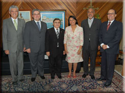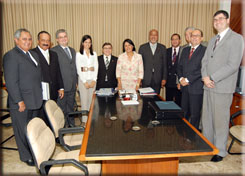 | Diretoria da OAB-BA e a presidente do TRT5 | Diretores e Conselheiros com a Desembargadora Ana Lúcia Bezerra |