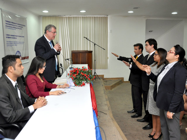 Foram empossados, na tarde da última terça-feira (21/07), os membros da nova Comissão de Juizados da OAB da Bahia: o presidente Frederico Santana de Farias e os integrantes André Marinho Mendonça, Betânia Rocha Rodrigues e Claudiane Gil de Carvalho Lima. Conduzida pelo presidente da Ordem, Luiz Viana Queiroz, a posse aconteceu durante uma solenidade de entrega de carteiras, realizada no auditório da seccional, na Rua Portão da Piedade.