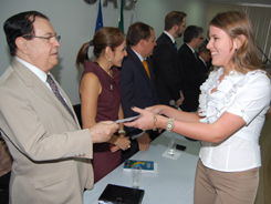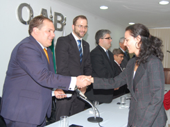 Após a leitura do compromisso, as carteiras foram entregues pelos componentes da alta mesa, composta também pelo Diretor Tesoureiro Ary Moreira, o Secretário Adjunto André Godinho, o Presidente do Clube dos Advogados da Bahia, Adilson Pinheiro, o Ex-Presidente da OAB-BA, Tomas Bacelar, o Conselheiro Seccional Domingo Arjones e os advogados Edson O''''''''''''''''Dwyer, Paulo Eduardo Caldas Rosa e César Tavolieri.