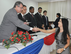 Após a leitura do Compromisso de Lei, feita pela estudante Laila Cristina Arouca de Araujo, o Presidente deu início à entrega das Carteiras.