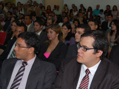 Após o Hino Nacional, o Presidente convidou para saudar os novos advogados Luiz Augusto Coutinho. O advogado criminalista falou do compromisso dos profissionais de Direito com a sociedade e a Justiça. "Advogar é plantar para colher. É ter paciência para vencer. É como matar um leão todos os dias", ressaltou Luiz Coutinho. Na sequência, a leitura de compromisso foi feita por Sthephanie Muñoz, uma dos advogados que receberam a carteira.