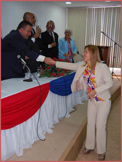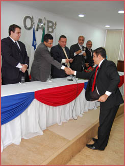 A saudação foi feita pelo advogado Oswaldo Torres Neto que destacou a importância de ser um advogado e a luta da OAB em defesa das prerrogativas do advogado e da democracia, lembrando o momento atual em que o presidente da OAb-BA, Saul Quadros acompanhou o pedido de impeachment do governado do DF, José Roberto Arruda, suspeito de envolvimento num esquema de corrupção. Torres Neto enfatizou que este é o dever da OAB e finalizou sua fala, parabenizando os novos associados à OAB-BA.