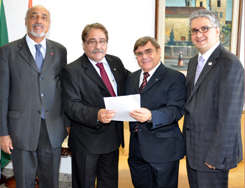 .O Presidente da OAB-BA, Saul Quadros, o Vice-Presidente, Antônio Menezes, e o Secretário-Geral Adjunto, André Godinho, entregaram, nesta sexta-feira (9), ao Presidente do Tribunal de Justiça da Bahia, Mario Alberto Simões Hirs, a lista sêxtupla com os nomes dos candidatos à vaga de Desembargador no TJ-BA pelo Quinto Constitucional, definida na última quinta-feira (8), em eleição realizada pela OAB-BA. O conselheiro seccional Domingos Arjones também esteve presente.