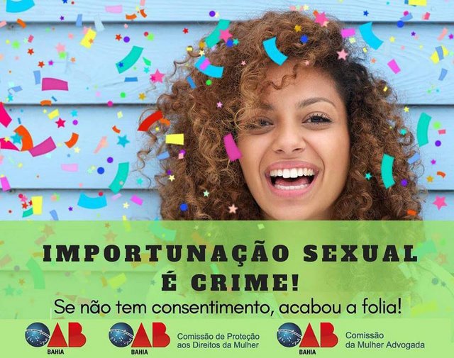 Para combater números como este, as Comissões de Proteção aos Direitos da Mulher e da Mulher Advogada da OAB-BA lançaram uma campanha direcionada ao Carnaval, período em que a importunação e assédio contra a mulher são ainda mais comuns. Representantes das comissões percorrerão os principais circuitos da folia, levando informação e orientação à população.
