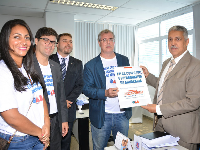 A OAB da Bahia, por meio da sua Comissão de Direitos e Prerrogativas promoveu, nesta terça-feira (07/03), uma Blitz de Prerrogativas no Fórum dos Juizados, no Imbuí. O movimento em prol da defesa das prerrogativas profissionais dos advogados começou às 9h com a presença do presidente da OAB-BA, Luiz Viana Queiroz, a vice-presidente, Ana Patrícia Dantas Leão, o conselheiro federal Fabricio de Castro Oliveira, os conselheiro seccionais Edson Nuno, Gustavo Amorim, Vanessa Lopes e Adriano Batista, que é também presidente da Comissão de Direitos e Prerrogativas, o procurador de Prerrogativas Matheus Brito e os membros da comissão Adriana Abreu, Camilla Coutinho, Leo Gramacho, Luciana Ava, Mateus Silva, Pedro de Menezes e Saulo Guimarães, e outros advogados.
