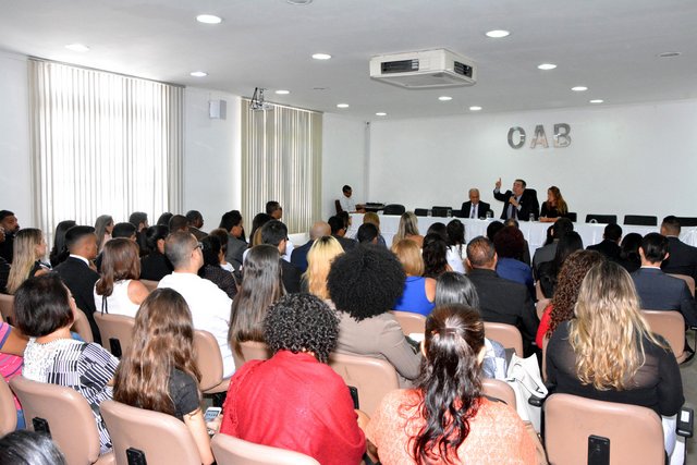 A OAB-BA entregou nesta quarta-feira (24) 53 carteiras para novos estagiários de Direito. A cerimônia ocorreu no auditório da sede da Ordem, no bairro da Piedade, e contou com as presenças do secretário-geral adjunto da OAB-BA, Pedro Nizan, da membro da Comissão de Direitos e Prerrogativas da OAB-BA, Adriana Abreu, e do desembargador Sergio Cafezeiro. Durante seu discurso, Pedro Nizan ressaltou a importância dos estudantes buscarem ao máximo se preparar para o mercado de trabalho. "Vocês elegeram essa profissão para ser o canal das senhoras e senhores para uma vida digna. Então, recomendo que estudem porque o momento é este. O Direito é uma ciência viva e que se renova, logo o estudo é algo constante", pontuou. Além do aprimoramento técnico, Nizan destacou que os profissionais precisam estar atentos às relações interpessoais. "Muitas pessoas pensam que um embate judicial entre dois advogados é uma briga de vida ou morte. Isso não é verdade. Você deve tratar o seu colega da forma mais branda possível, porque quanto mais conhecimento você tem, melhor você deve tratar as pessoas, com mais educação e de forma mais humana e cordial". Adriana Abreu fez questão de lembrar aos estagiários a força dos operadores do Direito no processo de construção institucional do Brasil. "Não há uma página da história deste país que esteja escrita sem a presença firme, liderando a sociedade, dos bacharéis, advogados e estudantes de Direito da nossa OAB. Essa é uma herança que recebemos e nos habilita a superar os desafios que no futuro se apresentarão", afirmou. Ela reforçou ainda o papel da Ordem na defesa de toda a classe e a importância de todos os elos que a compõem. "Tenham absoluta certeza que a OAB está a serviço de vocês. A Ordem é uma entidade jurídica que se concretiza no trabalho honesto, ético, honrado e digno de cada advogado e cada advogada e nós todos unidos formamos esta grande entidade", completou. Foto: Angelino de Jesus (OAB-BA)
