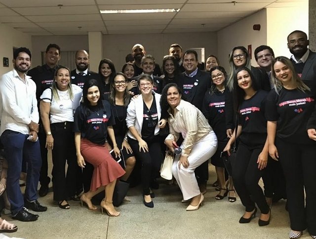 Com a presença da vice-presidente da OAB-BA, Ana Patrícia Dantas, ao lado da presidente da Comissão dos Juizados da seccional, Vanessa Lopes, a iniciativa contou com visita às turmas recursais, distribuição de bottons e camisas e conversa com os juízes das turmas e advogados sobre a relevância da campanha.