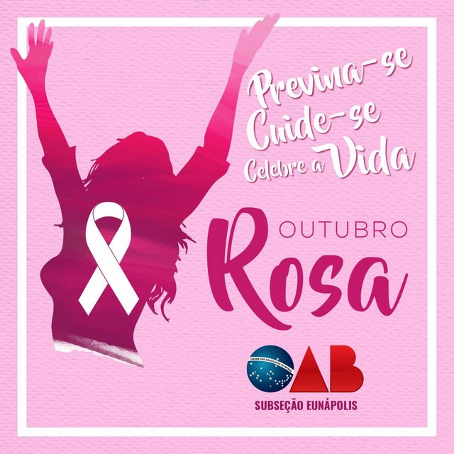 OAB - Subseção Eunápolis, através da Comissão de Defesa dos Direitos da Mulher, promoverá ações institucionais que buscam apoiar o Outubro Rosa, que visa conscientizar contra o câncer de mama. Entre os temas deste movimento, está a importância da prevenção e do diagnóstico precoce da doença.