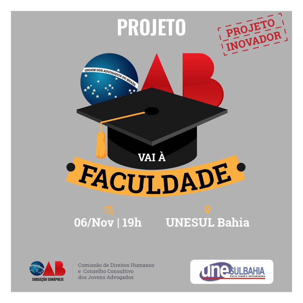 OAB - Subseção Eunápolis implementará o projeto “OAB vai à Faculdade”