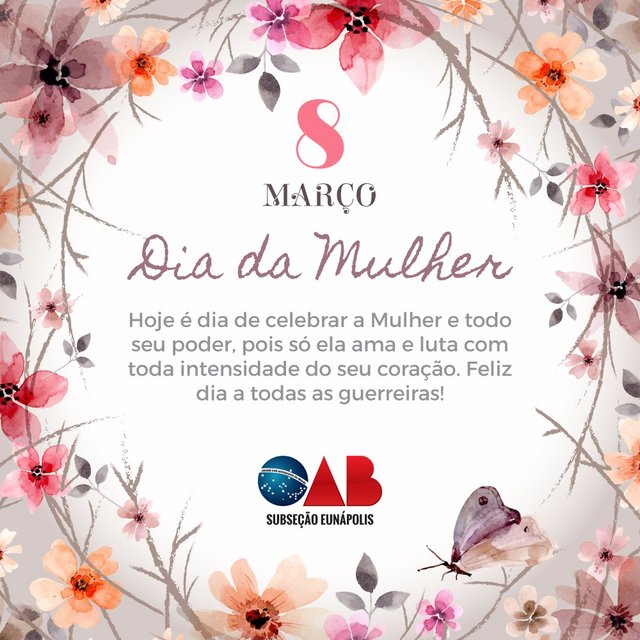 A OAB, através da Diretoria Executiva e de todas as Comissões, deseja-lhe um feliz Dia da Mulher.