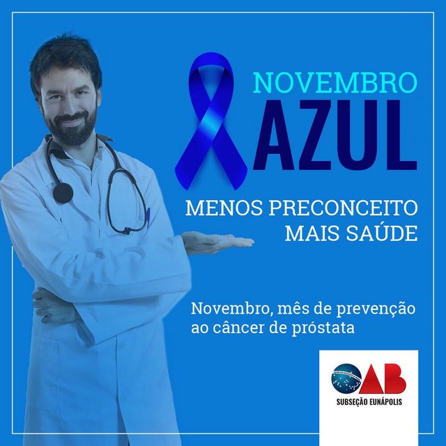 A OAB/Subseção Eunápolis promove campanha “Advogue por essa causa: Menos preconceito - Mais saúde”, alusiva à Campanha Novembro Azul, iniciativa mundial dirigida à sociedade e aos homens sobre a importância da prevenção e do diagnóstico precoce do câncer de próstata e outras doenças masculinas.