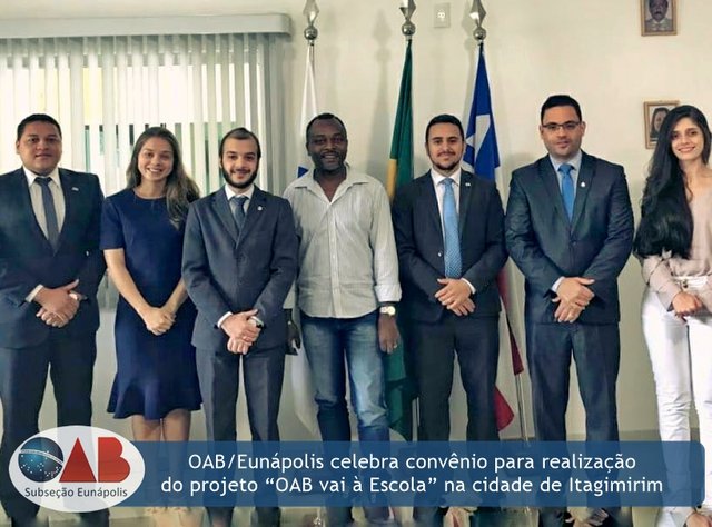 Na reunião foi firmado o convênio entre OAB/Eunápolis e a Secretaria de Educação de Itagimirim para desenvolvimento do projeto ‘OAB vai à Escola’ com previsão de iniciar no segundo semestre desse ano.