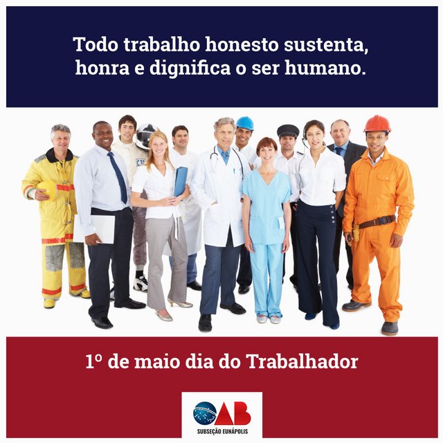 Nessa data (01/05), parabenizo todos os trabalhadores que contribuem para desenvolvimento do nosso país, em especial aos advogados que exercem relevante função social dentro do Estado Democrático de Direito.