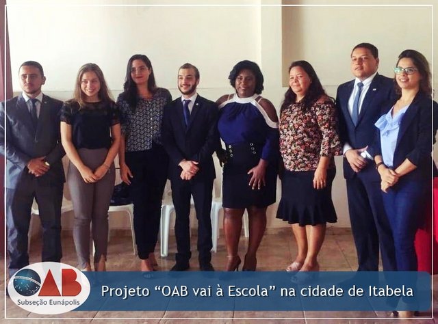 Na manhã desta quinta-feira (16/08), representantes da Comissão de Direitos Humanos e do Conselho Consultivo de Jovens Advogados da OAB Subseção Eunápolis visitaram estiveram na cidade de Itabela para o relançamento do projeto "OAB vai à Escola".