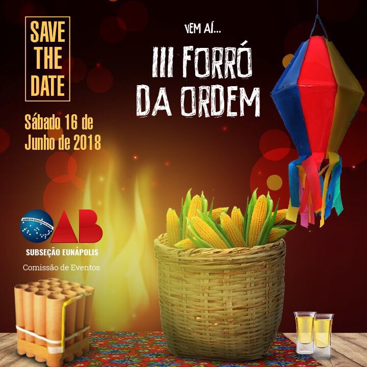 A OAB/Eunápolis, através da Comissão de Eventos e Cultura, está organizando e promovendo o “III Forró da Ordem”.