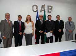 Fizeram parte da mesa ainda o Secretário Geral Adjunto, André Godinho, o Conselheiro e Presidente do CESA-BA, Fabrício Oliveira, o Conselheiro João Dantas Neto, e o Presidente da Subseção de Camaçari, Ney Cassim.