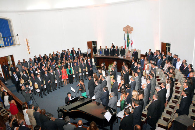 Com o salão nobre da Reitoria da Universidade Federal da Bahia (UFBA), no Canela, lotado, o novo Conselho Seccional da OAB-BA tomou posse na noite desta quinta-feira (21/01). A solenidade, que teve como anfitrião o presidente da entidade, Luiz Viana Queiroz, serviu também para dar boas-vindas à nova diretoria da seccional, empossada no último dia 1º, e contou com a presença de autoridades políticas, representantes de instituições jurídicas de todo o Brasil, conselheiros federais e seccionais, presidentes de subseção e advogados de diversos estados.Participaram da mesa alta, além de Viana, o presidente nacional da OAB, Marcus Vinícius Furtado Coêlho; o vice, Cláudio Lamachia, eleito para presidir o Conselho Federal na próxima gestão; o reitor da UFBA, professor João Carlos Salles; o 1º vice-presidente do TJBA, Jatahy Fonseca Jr.; a presidente eleita do TJBA, desembargadora Maria do Socorro Barreto; a nova presidente do TRT5, desembargadora Maria Adna Aguiar; a procuradora-geral adjunta, Luciane Croda, que representou o governador Rui Costa; a vice-prefeita de Salvador, Célia Sacramento, representando o prefeito ACM Neto; além dos diretores da OAB-BA, a vice-presidente Ana Patrícia Dantas, secretário-geral Carlos Medauar, o secretário-geral adjunto Pedro Nizan, a tesoureira Daniela Borges e o presidente da CAAB, Luiz Coutinho.