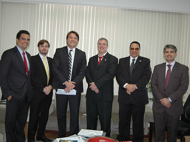 O presidente da OAB da Bahia, Luiz Viana Queiroz, e o vice-presidente, Fabrício Oliveira, receberam nesta quarta-feira (15) a visita do novo presidente da Associação Baiana de Advogados Trabalhistas (ABAT), Emerson Ferreira Mangabeira, que esteve acompanhado por Adilson Affonso de Castro, vice-presidente da ABAT e ouvidor geral da OAB-BA, pelo secretário geral Aaron Góis Pinheiro e pelo conselheiro Murilo Cerqueira.Segundo o novo presidente da ABAT, a visita teve caráter de cortesia, para uma apresentação da sua nova diretoria e do novo conselho, e também o objetivo de iniciar as discussões sobre a renovação do convênio entre as duas entidades, além do estreitamento de uma parceria com a Ordem para a resolução de problemas na Justiça do Trabalho. "Viemos colocar a ABAT à disposição da OAB, visando, além da renovação do convênio já existente, promover uma maior aproximação e colaboração entre as duas instituições", afirmou Mangabeira. Essa maior aproximação visa "o estabelecimento de uma parceria no enfrentamento dos problemas formais da Justiça do Trabalho na Bahia e na defesa das prerrogativas dos advogados trabalhistas, que deve envolver a nova Procuradoria de Prerrogativas da OAB da Bahia", revelou.