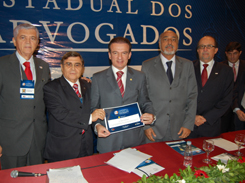 O último painel da conferência foi articulado pelo Presidente Ophir Cavalcanti. Em um auditório lotado, ele falou sobre a Conferência Nacional dos Advogados, que acontecerá em novembro na cidade de Curitiba, e aproveitou a oportunidade para convidar todos os advogados baianos. Ophir Cavalcante também agradeceu o convite do Presidente da Seccional, Saul Quadros, para participar da Conferência Estadual e homenageou-o como exemplo da advocacia brasileira. "Ele encanta pelo seu posicionamento firme, corajoso e, principalmente, pelo seu comprometimento com a advocacia. A OAB-BA é hoje referência nacional, é uma das melhores administrações das Seccionais do Brasil", disse. Na sua palestra, ele ainda comentou sobre o papel da OAB na luta pelos direitos da sociedade, pela moralidade e ética. "A nossa luta é para melhorar os costumes políticos do nosso país. Na próxima semana, a Ordem lançará o Observatório da Corrupção, que terá um site onde o cidadão brasileiro poderá informar à OAB os processos que estão tramitando no seu município ou Estado e a respeito de impunidades administrativas e de inconstitucionalidade", contou. Ele aproveitou, ainda, para citar sobre o Mandato de Segurança elaborado pela OAB-BA, solicitando a abertura imediata de concursos públicos para suprimento total das vagas em aberto nos cargos de Juiz de Direito e servidores auxiliares. O Mandato foi entregue na tarde desta última sexta-feira (19) ao Tribunal de Justiça da Bahia. "A Bahia deu um exemplo ao Brasil, mostrando para os órgãos da Justiça que o problema não é falta de recursos, mas sim de juízes e servidores", enfatizou.